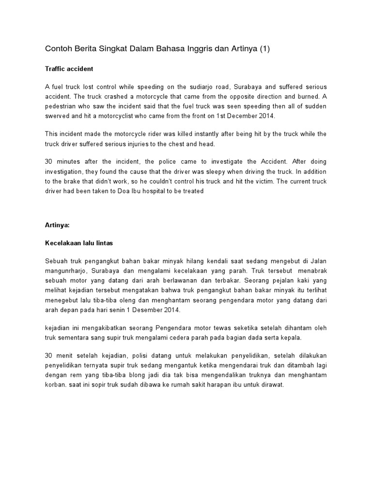 Contoh Berita Singkat Dalam Bahasa Inggris Dan Artinya Pdf